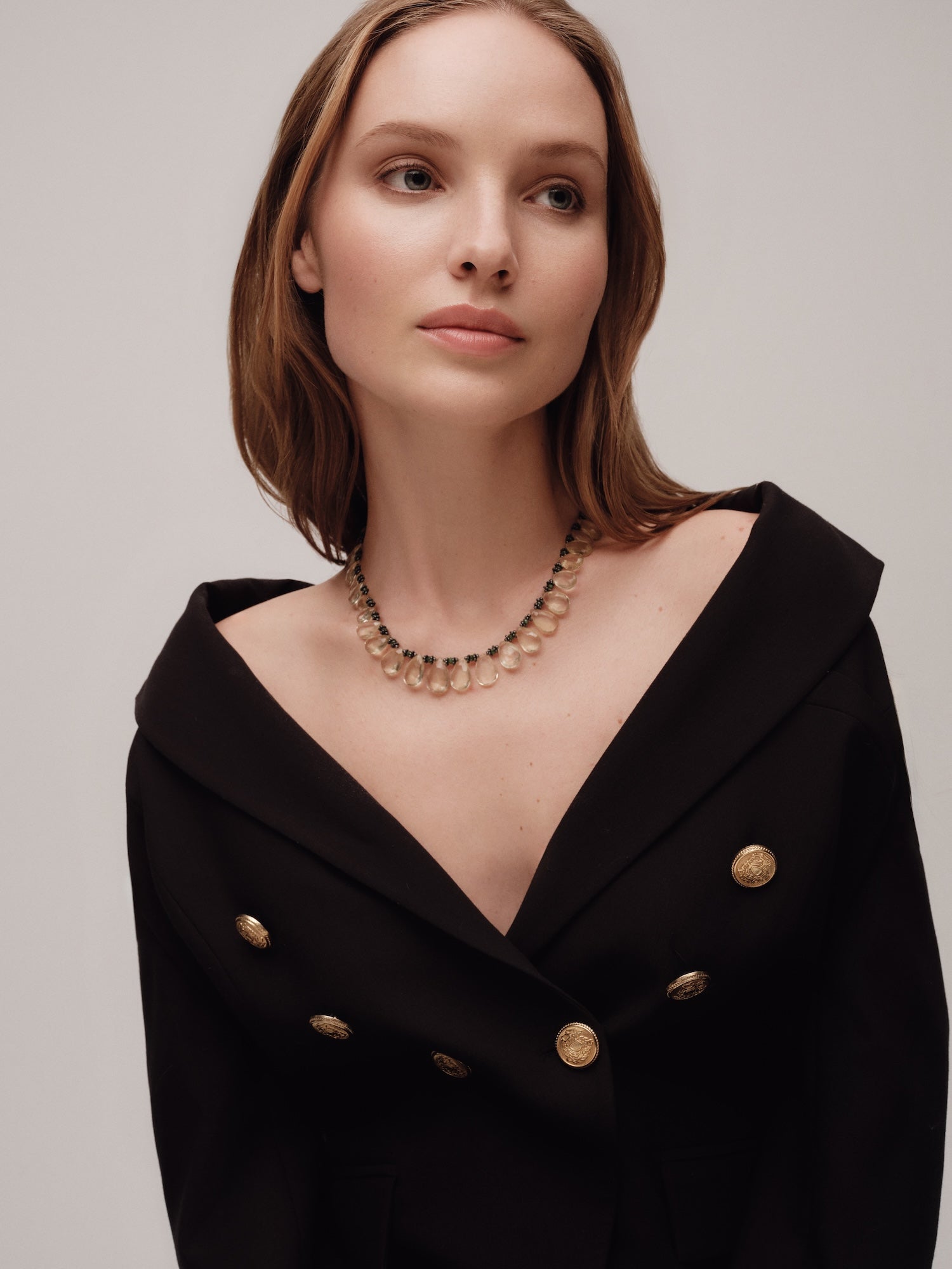 This one of a kind lime quartz & emerald silver necklace is an exquisite piece of jewelry that exudes both chicness and luxury.