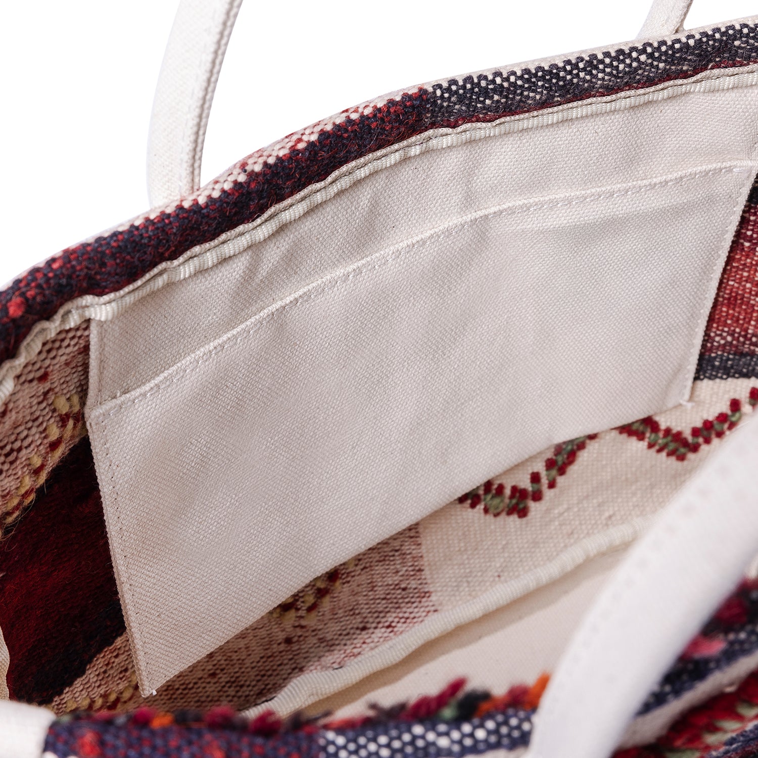 - Made of up-cycled handwoven rugs, cotton fabric