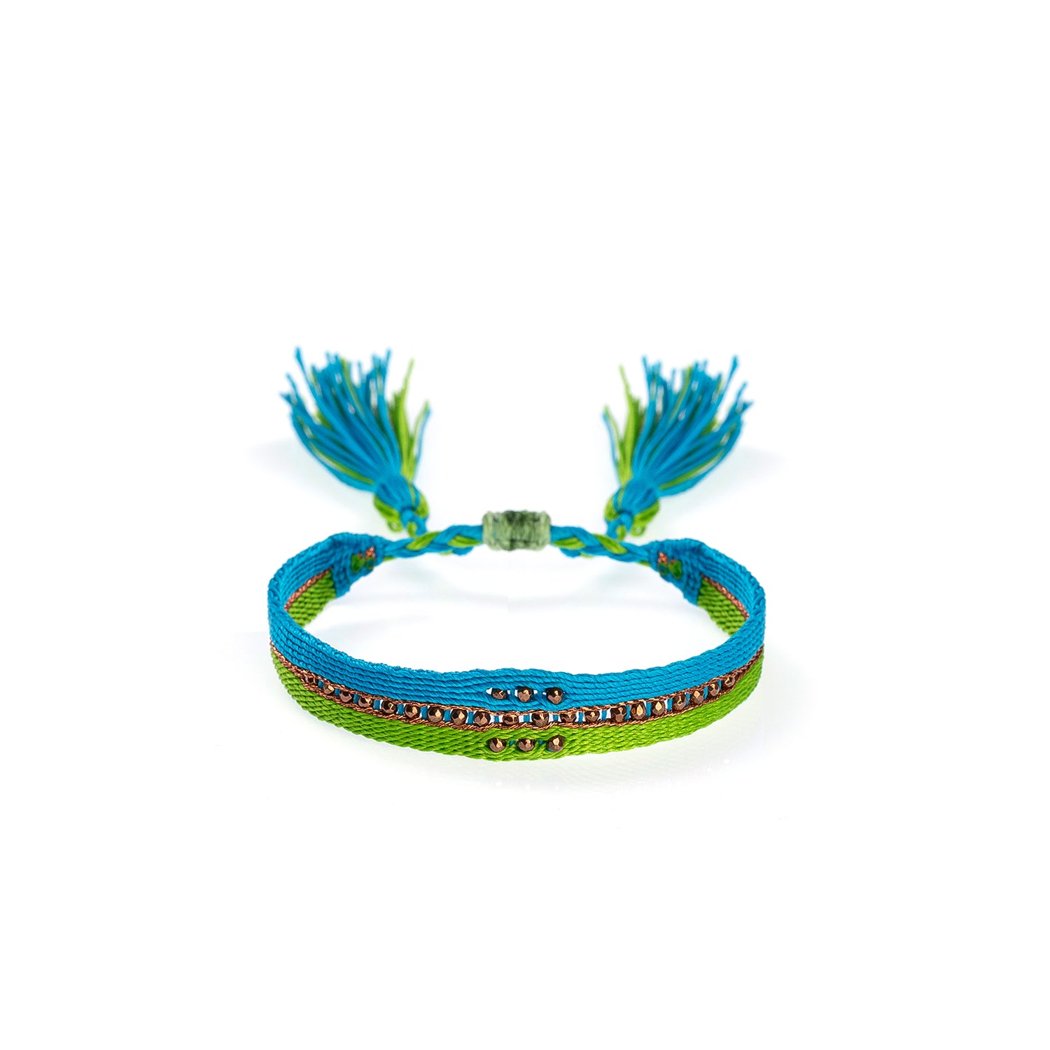 Inspired from the nomadic Anatolian technique “carpana weaving”, Anu Temple’s bracelets are hand woven traditionally by local artisans in Turkey. For a bit of a dose of bohemian charm, wear yours stacked with the other carpanas in different colors and sizes.