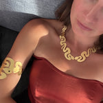 A modern snake cuff handcrafted and intricately designed to embody the essence of the Medusa myth. This elegant piece captures the spirit of transformation and power, making a bold statement that is both stylish and symbolic.