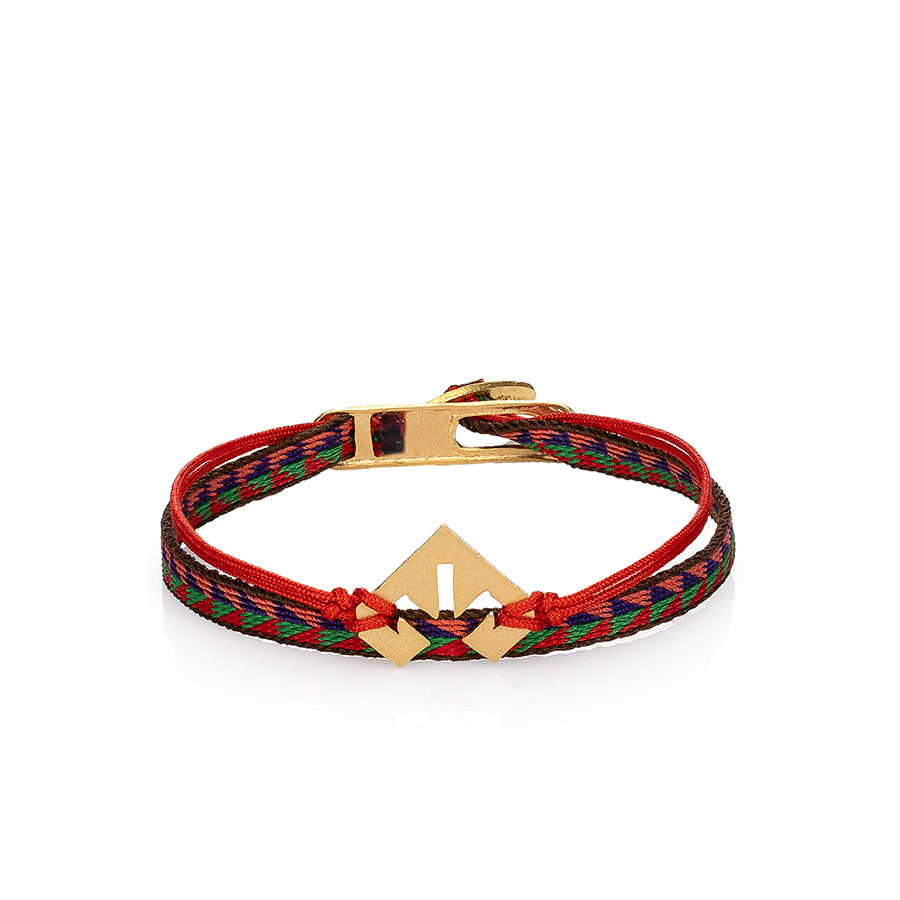 Hand-woven by the local artisans, this bracelet is cast from gold plated brass with the ancient motifs of Anatolian lands; the kilim figure “Ram’s Horn” a strength and protection.