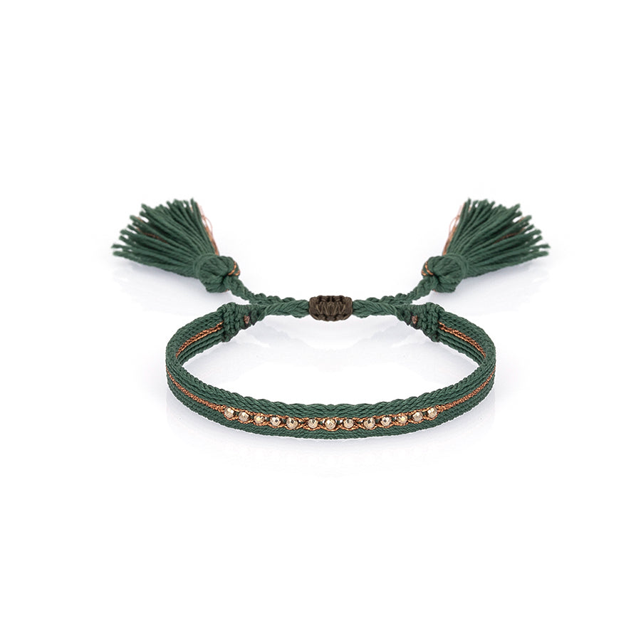 Anu Temple'ın göçebe Anadolu tekniği olan “çarpana dokuma” tekniğinden ilham alan bileklikleri, Türkiye'deki yerel zanaatkarlar tarafından geleneksel olarak elde dokunmaktadır.