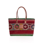 ANU TEMPLE'ın el dokuması eski kilimlerin yeniden hayata döndürülmesiyle üretilen tote çantası, Orta Anadolu'nun yerel zanaatkarları tarafından yapılmıştır. Günlük kullanım ve seyahatler için pratik bir seçim olan bu geniş çantanın iç kısmında büyük deri cep mevcuttur. Üstteki deri saplar, omzunuzun üzerinden rahatça taşıyabileceğiniz kadar uzundur.
