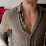 Tılsımın güçlendirici bir dönüşü olan bu eşsiz pandantif kolye, eski Anadolu koruma sembollerini taşır; enerji seviyenizi yeniden dolduracak güzel yakut taşı ile tamamlanmıştır.