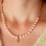 Anadolu'nın kadim ana tanrıçası Kibele'nin kilimlere elleri belinde hamile bir kadın olarak tezahür etmiş ve doğurganlık ve bereketin ikonu haline gelmiş sembolü ile yüksek kalite inci ve el dokuması şeritlerimizi birleştirerek tasarladık. Kibele yüzüğümüz ile beraber takılmasını tavsiye ederiz.