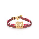 Yerel zanaatkarlar tarafından elde dokunan bu bileklik, Anadolu topraklarının kadim motiflerinden olan aşk ve şans anlamına gelen "Sandık" kilim figürüyle altın kaplama pirinçten dökülmüştür.
