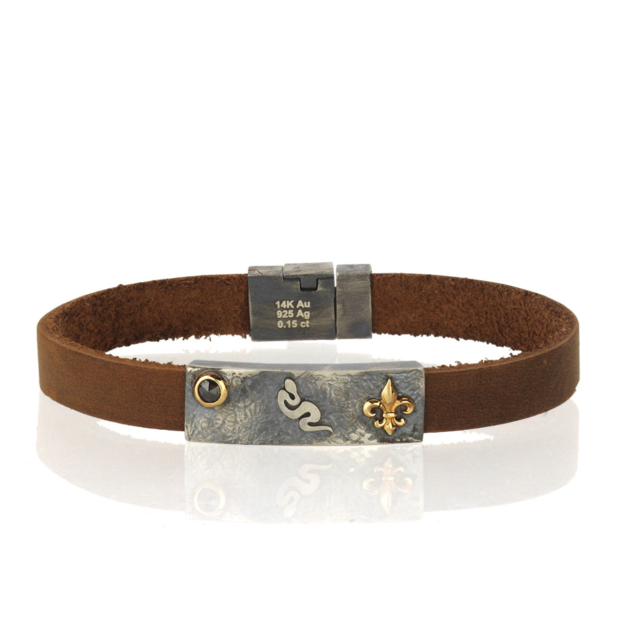 Altın Fleur-de-lis'i büyüleyici siyah bir elmasla süsledik ve gümüş dönüşümün sembolü yılanla birleştiredik. Bu benzersiz tasarım asalet ve gizem unsurlarını birleştirerek güç, bilgelik ve dönüşümü sembolize eder.