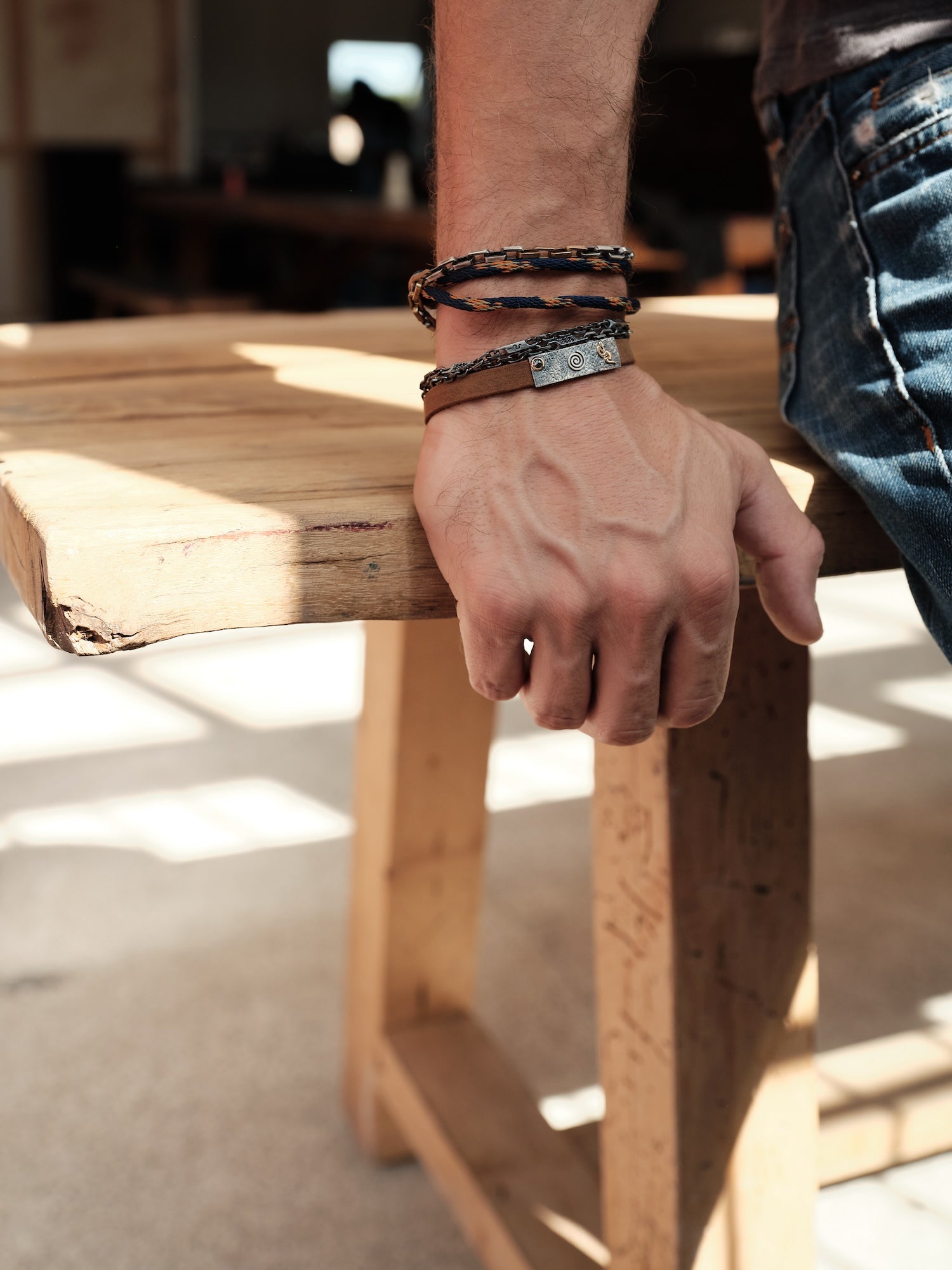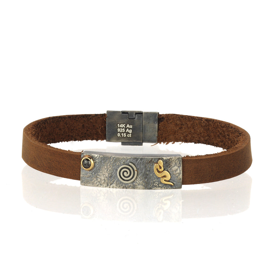 Bu zarif tasarım, dönüşümü ve sonsuzluğu simgeleyen siyah elmaslarla süslenmiş altın bir yılan ve gümüş bir spiral içermektedir. Dana derisinden üretilen bu aksesuar, lüksü çok yönlülükle kusursuz bir şekilde birleştiriyor.