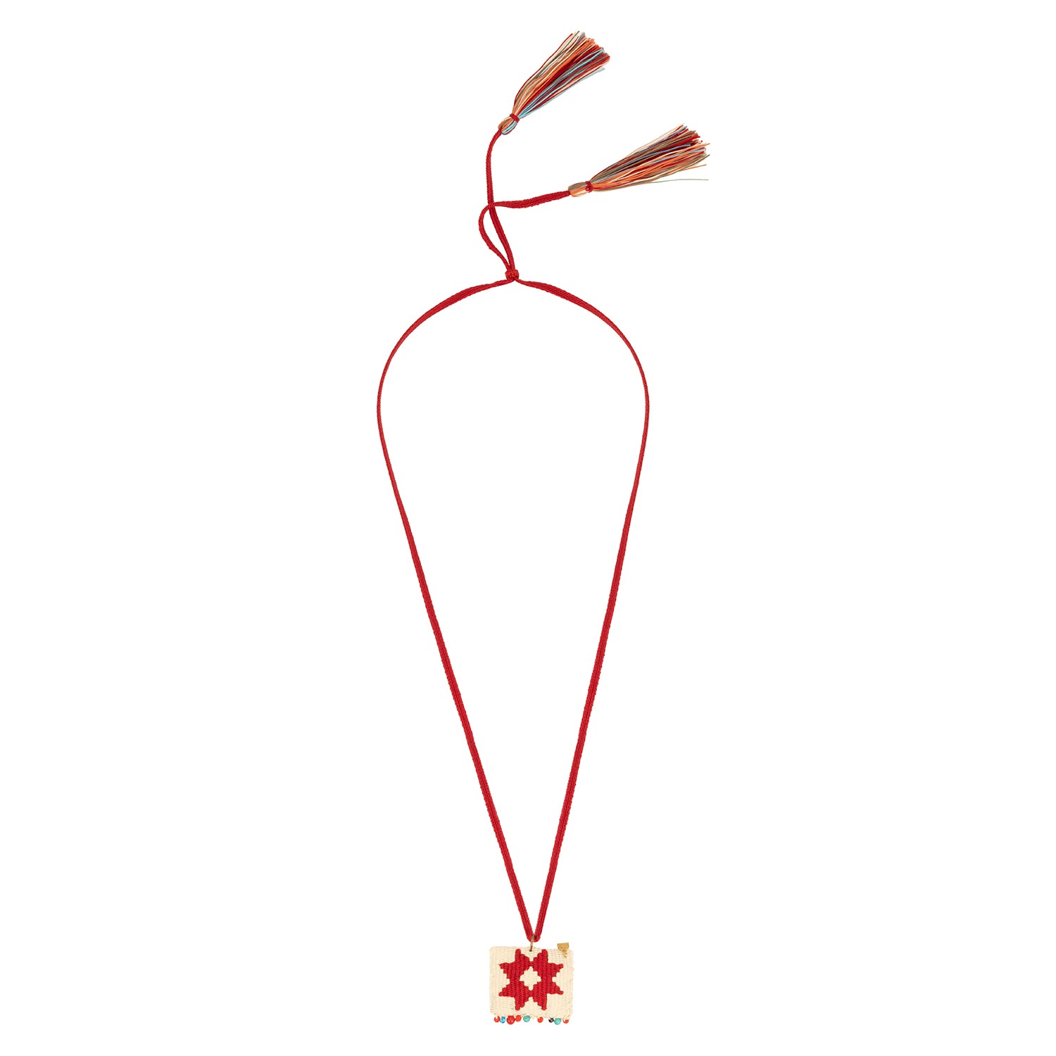 Anadolu'nun göçebe kilim dokumacılığından ilham alan Anu Temple'ın kolyeleri, Türkiye'deki yerel zanaatkârlar tarafından geleneksel olarak el dokumasıdır.